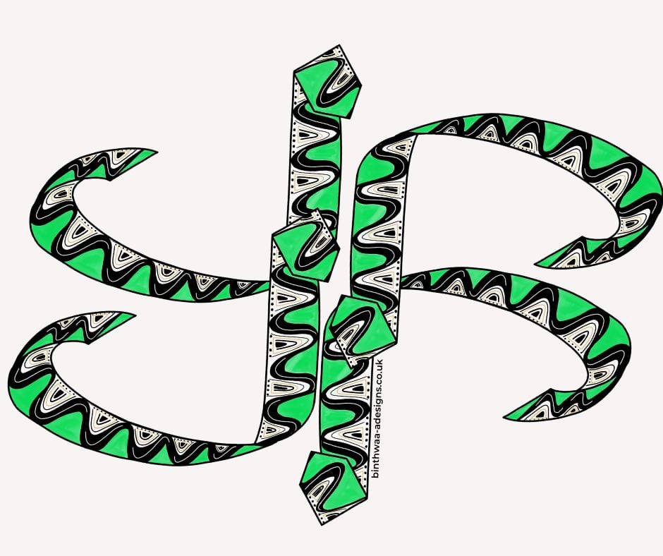 This calligraphy is based on the 'Thuluth' calligraphy. There are 4 main styles of Arabic calligraphy. In this final module of Afrabics Bitesize, the style is one that I've concocted. Namely, 'Afrabics' - Arabic with a splash of Africa.